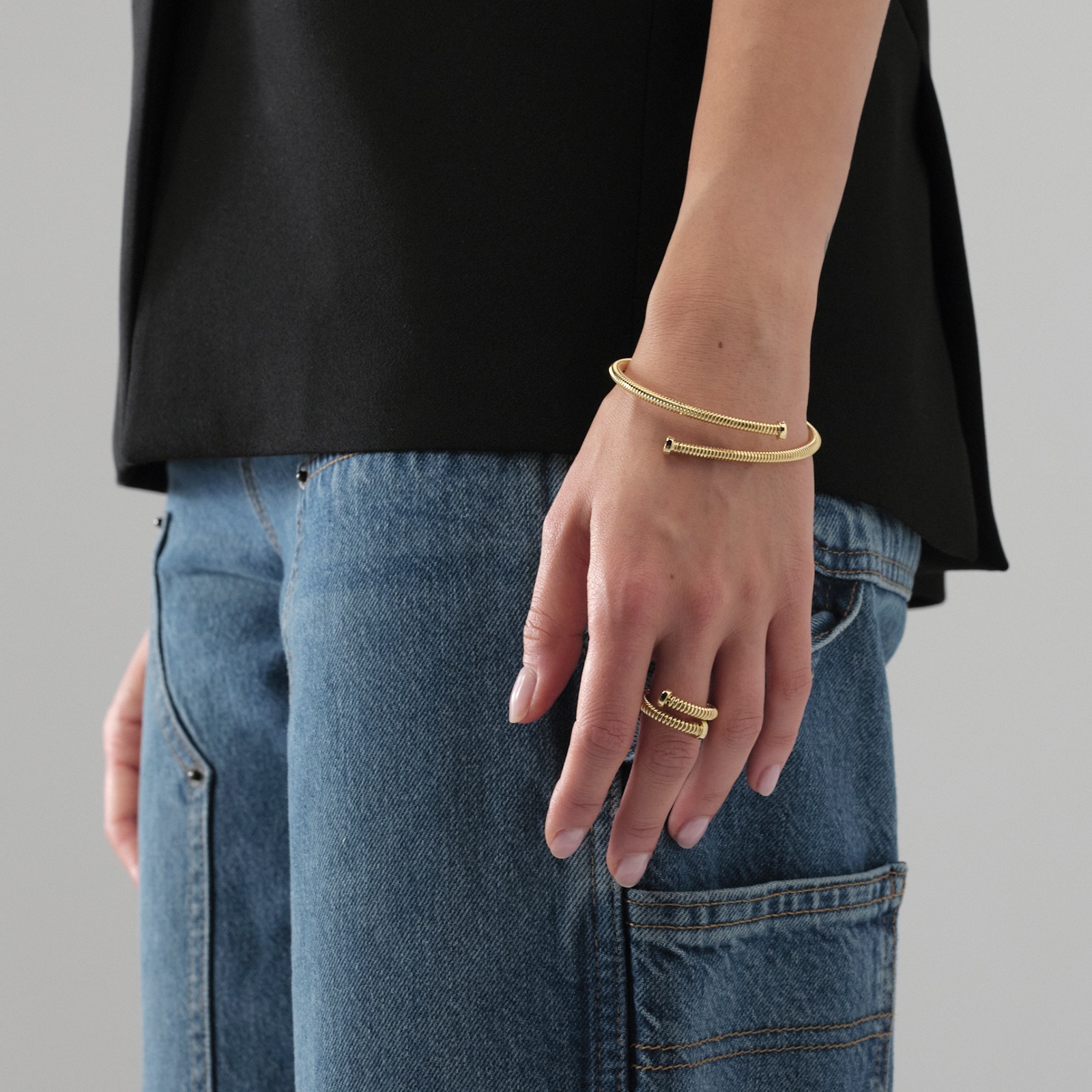 Bracciale bangle in catena coda di topo semi rigida. Il design essenziale e grintoso rende quasto bracciale bangle contrarié un accessorio originale e versatile. Indossalo da solo per impreziosire il tuo look di tutti i giorni ed abbinalo a collana ed anello coordinati per catturare ogni attenzione.