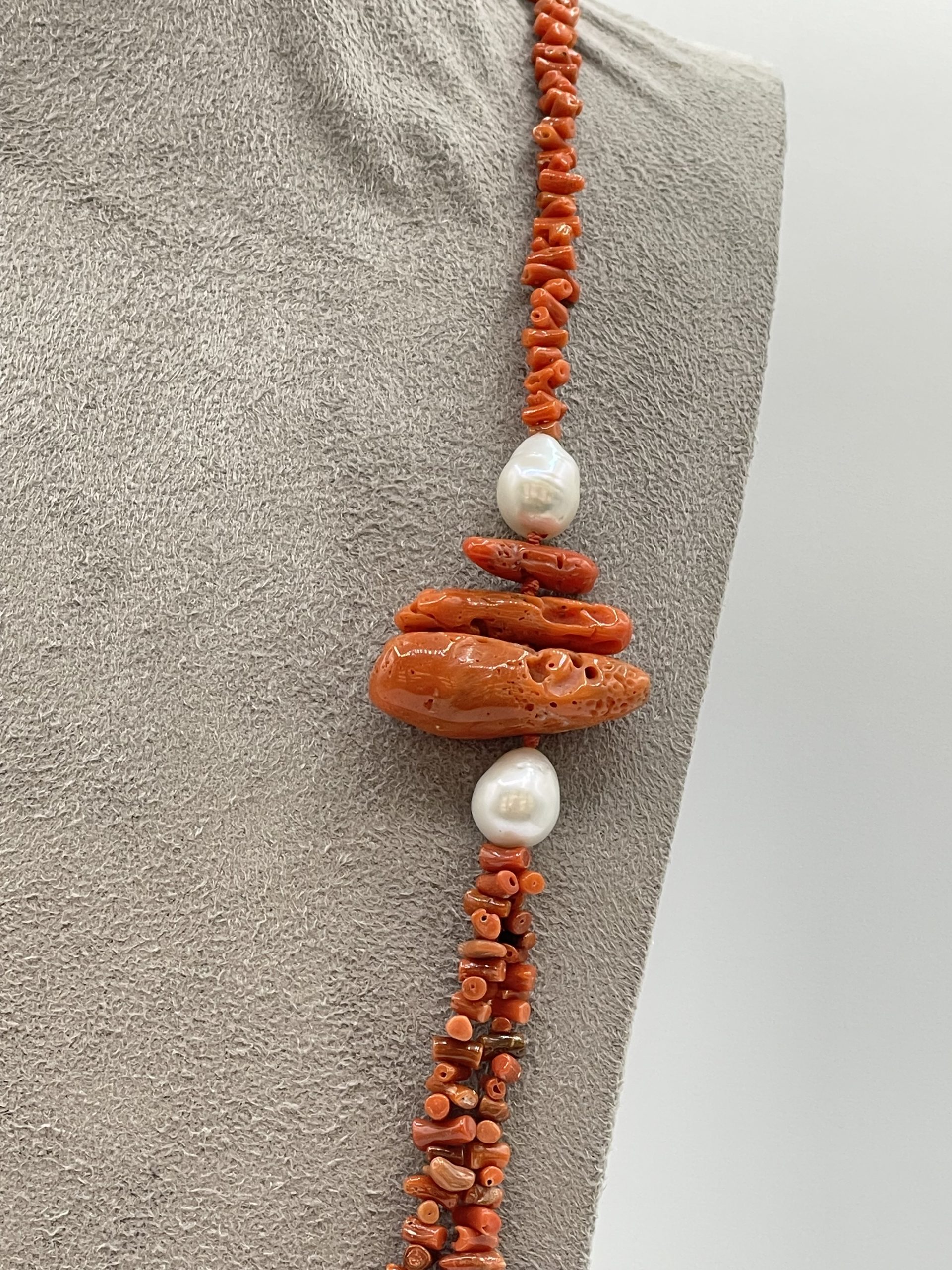 Collana 2 fili Corallo Sciacca con perle Barocche