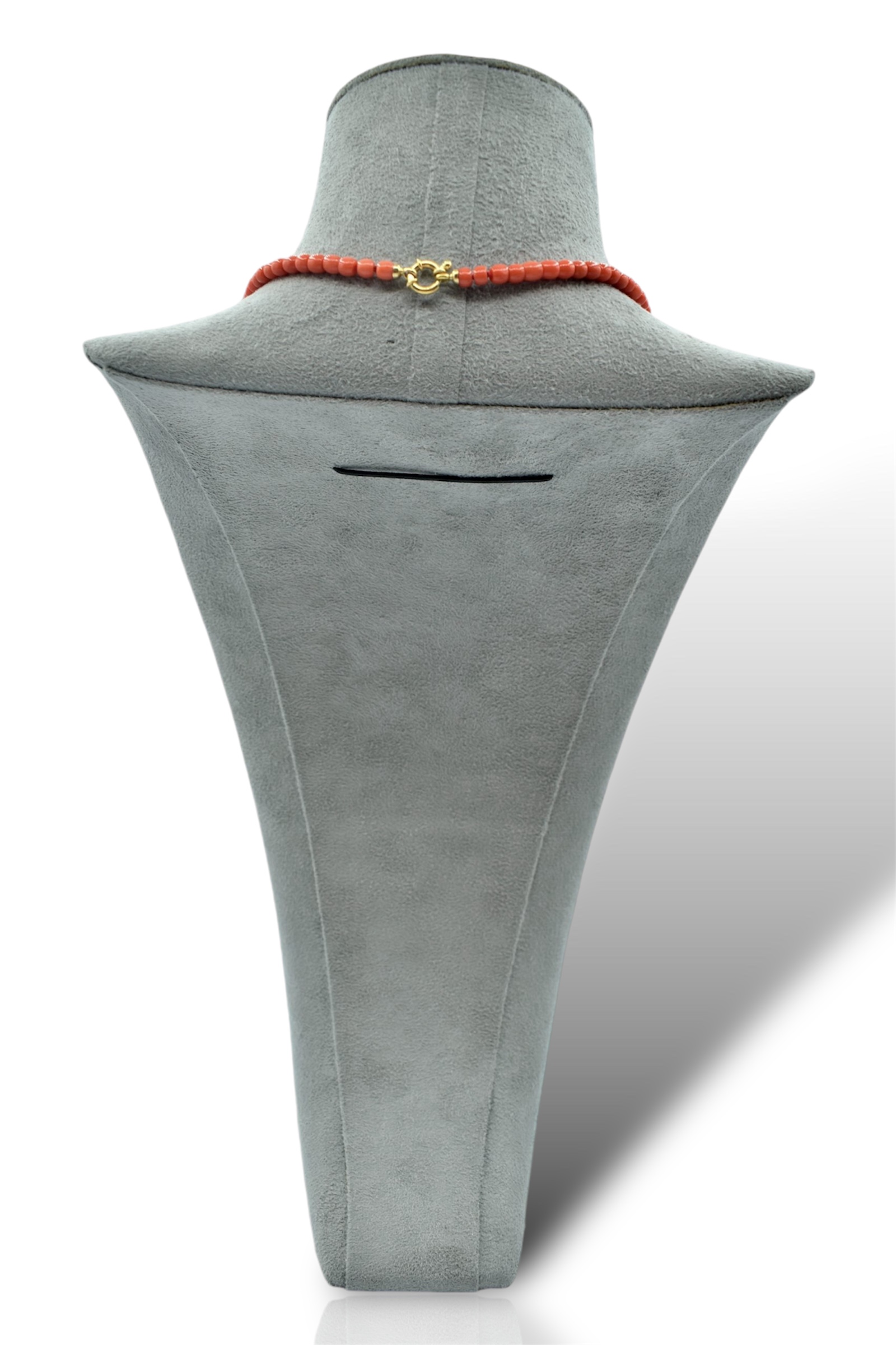 Collana Girocollo in Corallo Sciacca. Barilotti con chiusura in oro.